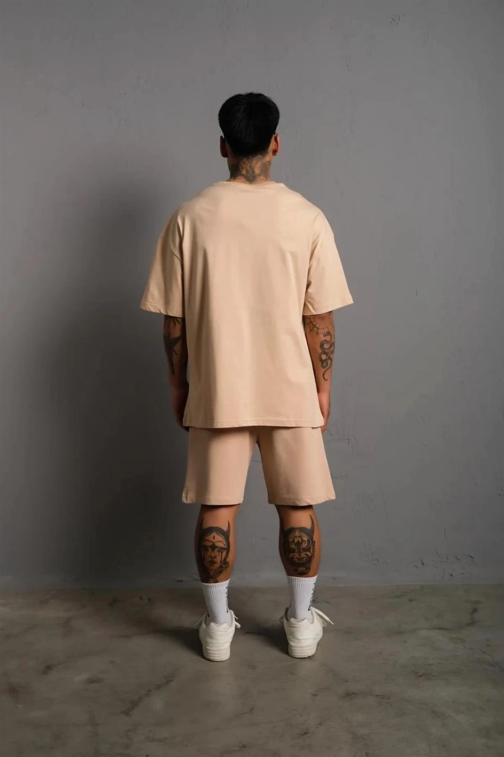 Erkek Alev Baskılı İkili Şortlu Takım - Bej