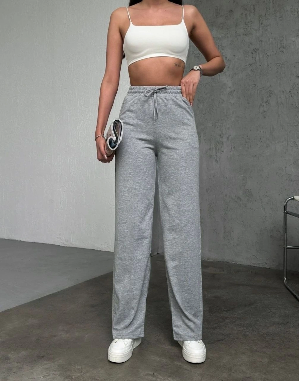 Kadın Basic İki İplik Eşofman Pantolon - Gri
