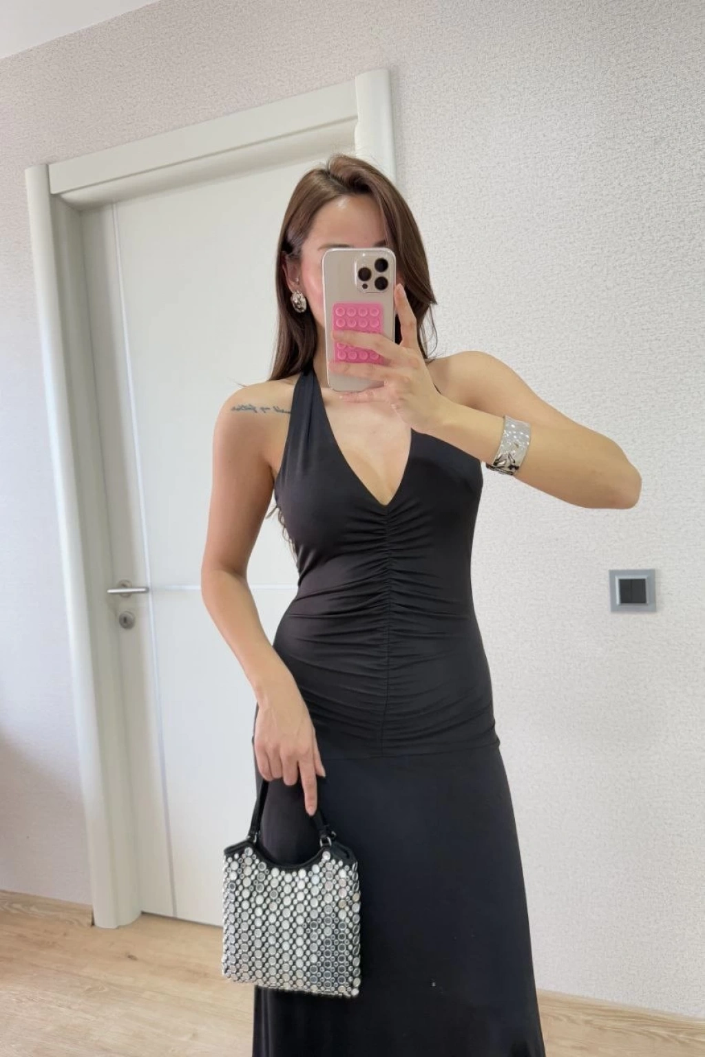 Kadın Sırt dekolteli Uzun Elbise - Siyah