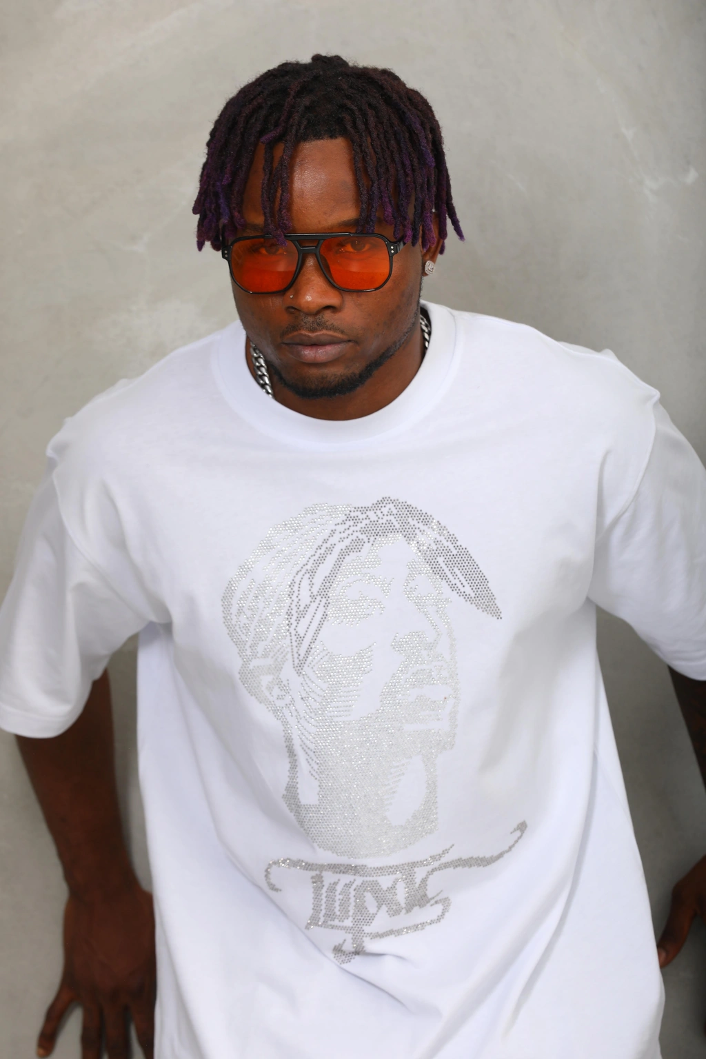 Toptan Oversize Taşlı Tişört - Tupac