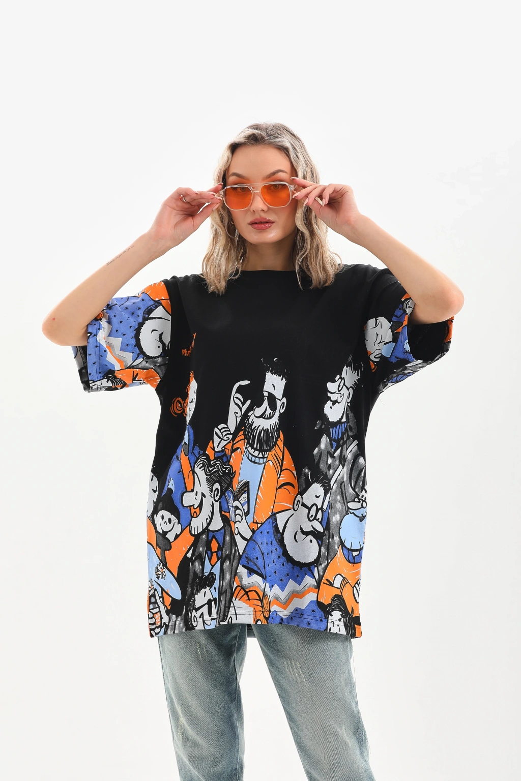 Toptan Oversize Tişört - Adamalar Ön Arka Kollar