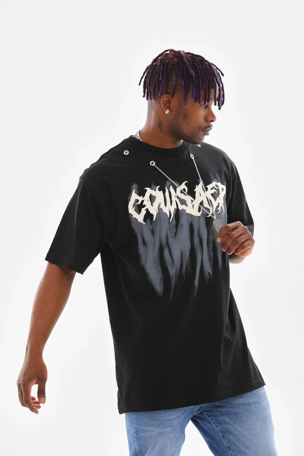 Toptan Oversize Tişört - Çelik Zincir Kolyeli Cowsaery