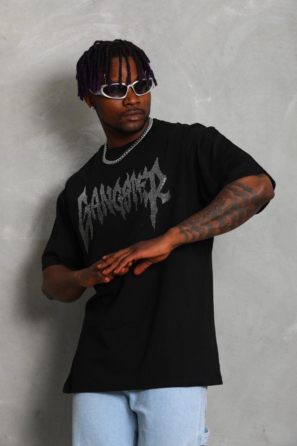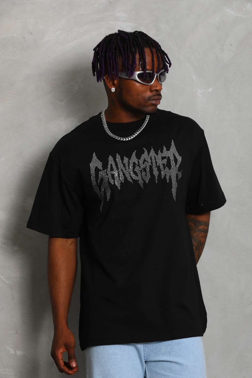 Toptan Oversize Taşlı Tişört - Gangster