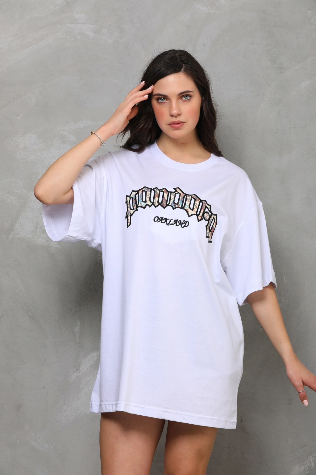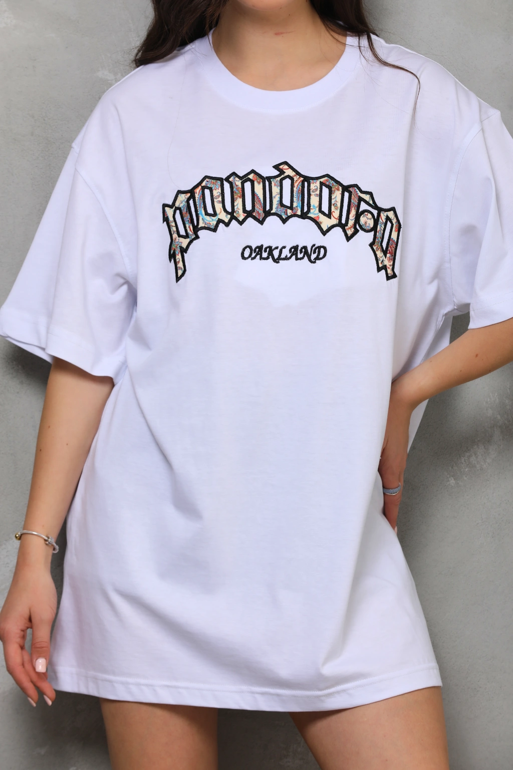 Toptan Oversize Tişört - Pandora Nakışlı Özel Aplike Desenli