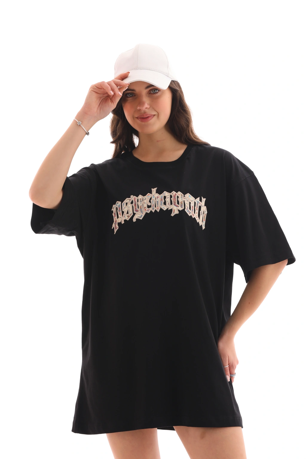 Toptan Oversize Tişört - Psychopath Nakışlı Özel Aplike Desenli