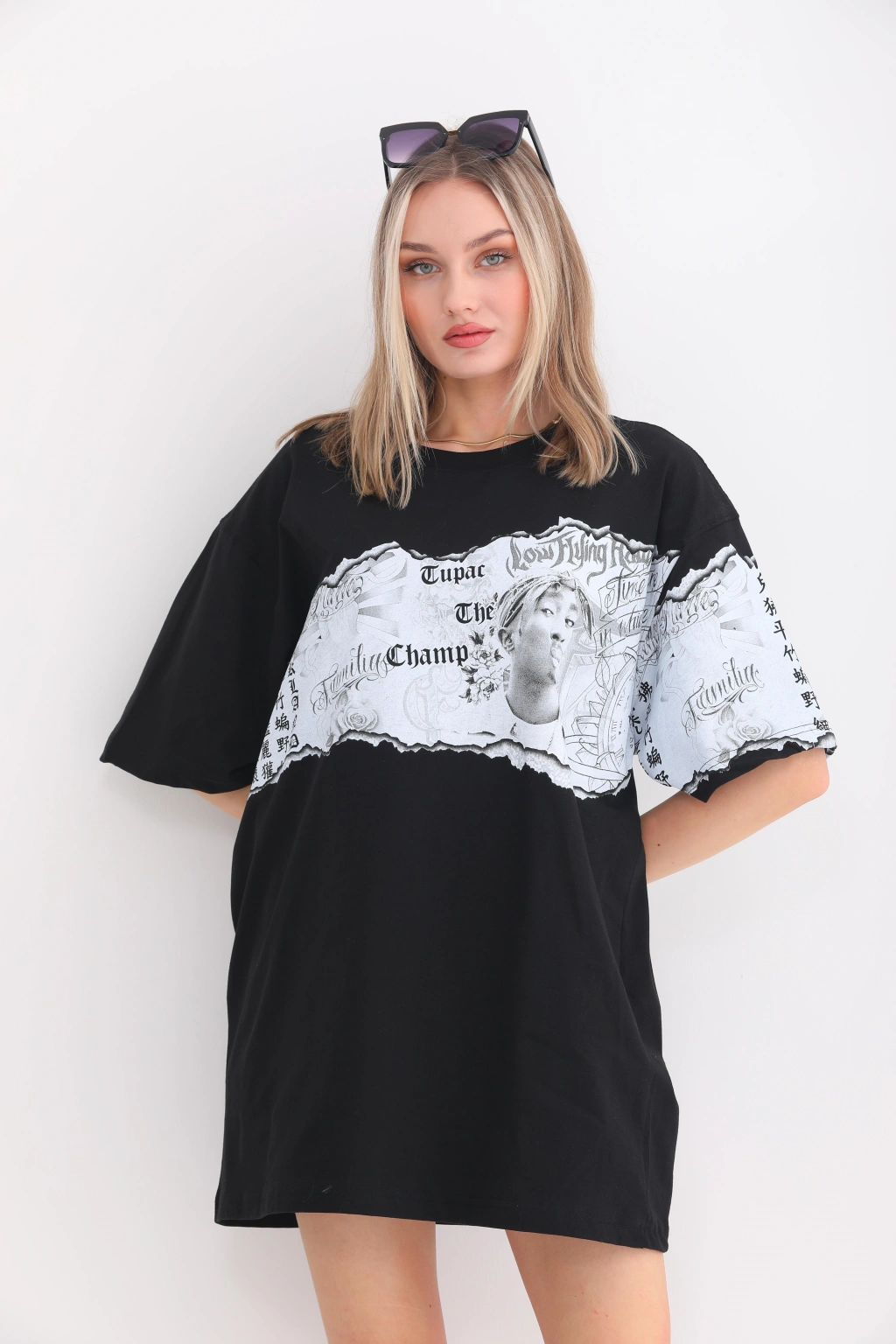 Toptan Oversize Tişört - Tupac Kollu