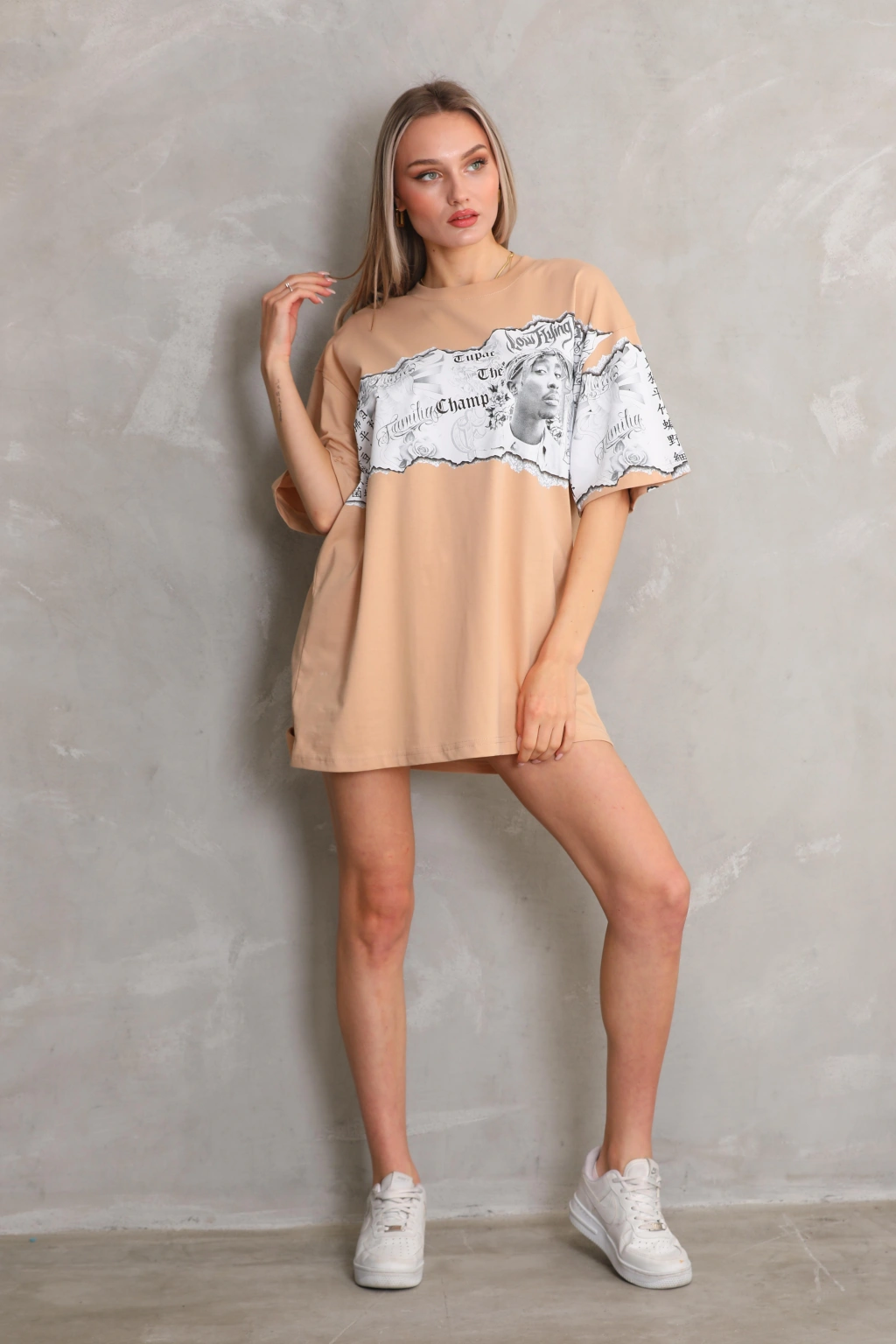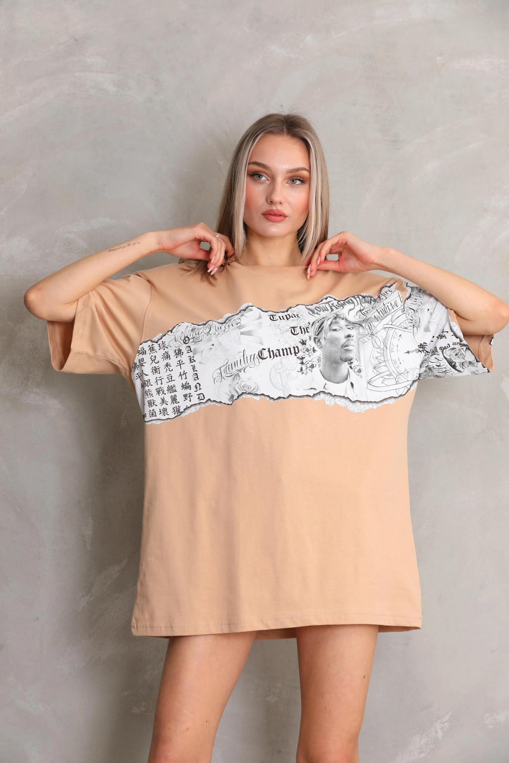 Toptan Oversize Tişört - Tupac Kollu